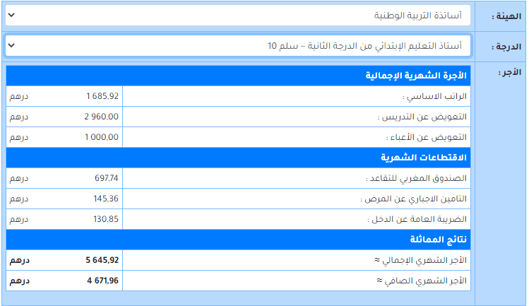 أجور الأساتذة و المعلمين حسب كل درجة و سلم بوزارة التربية الوطنية للتعليم