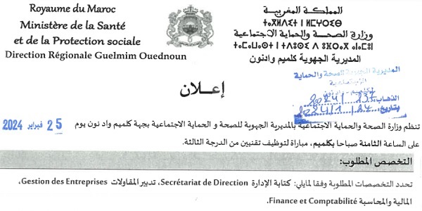 بشهادة البكالوريا أو الدبلوم ISTA.. وزارة الصحة والحماية الاجتماعية : مباريات لتوظيف 31 مناصب. آخر أجل 14 فبراير 2024