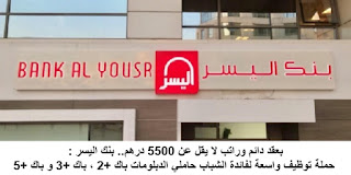 بعقد دائم وراتب لا يقل عن 5500 درهم.. بنك اليسر : حملة توظيف واسعة لفائدة الشباب حاملي الدبلومات باك +2 ، باك +3 و باك +5.