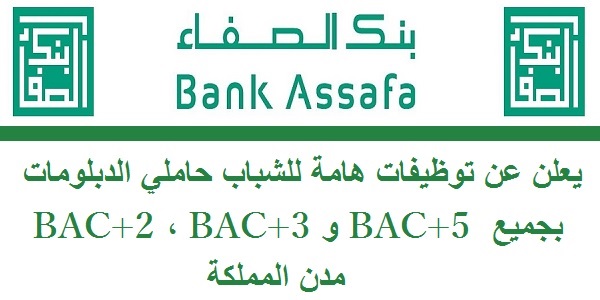 بنك الصفاء يعلن عن توظيفات هامة للشباب حاملي الدبلومات BAC+2 ، BAC+3 و BAC+5 بجميع مدن المملكة
