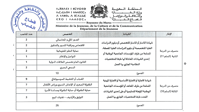 مباراة توظيف 36 متصرف من الدرجة الثانيوة والثالثة بقطاع الشباب