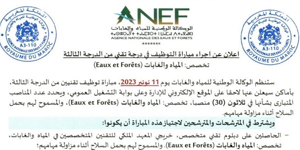 مباراة توظيف 53 منصبا بإالوكالة الوطنية للمياه والغابات. آخر أجل هو 3 نونبر 2023