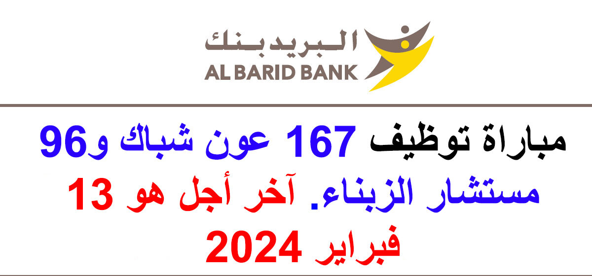 البريد بنك: مباراة توظيف 167 عون شباك و96 مستشار الزبناء. آخر أجل هو 13 فبراير 2024