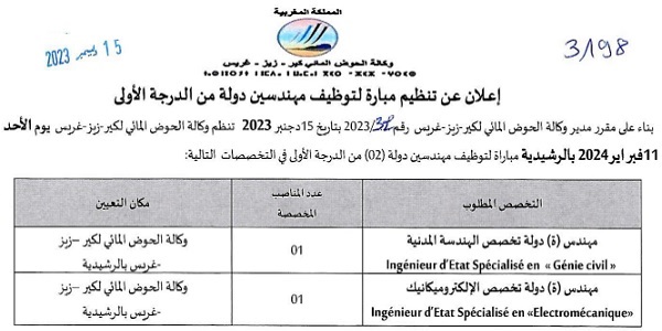 Al Wadifa كونكور جديد با وكالة الحوض المائي لكيز-زيز-غريس بالرشدية ، آخر أجل هو 12 يناير 2024 Lire la suite