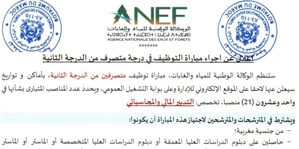 Al Wadifa مباراة توظيف 27 منصبا بإالوكالة الوطنية للمياه والغابات. آخر أجل هو 24 نونبر 2023 Lire la suite