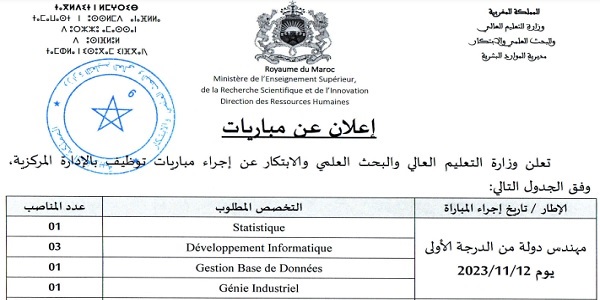 Al Wadifa كونكور جديد با وزارة التعليم العالي والبحث العلمي والابتكار (44 منصب) ، آخر أجل هو 19 اكتوبر 2023 Lire la suite