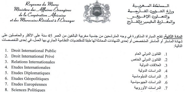 Al Wadifa كونكور جديد با وزارة الشؤون الخارجية والتعاون الإفريقي والمغاربة المقيمين بالخارج (125 منصب) ، آخر أجل هو 6 اكتوبر 2023 Lire la suite