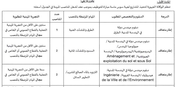 Al Wadifa كونكور جديد با الوكالة الجهوية لتنفيذ المشاريع لجهة سوس ماسة (13 منصب) ، آخر أجل هو 27 شتنبر 2023 Lire la suite