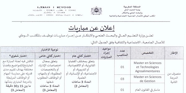 Al Wadifa كونكور جديد با المكتب الوطني للأعمال الجامعية الاجتماعية والثقافية (12 منصب) ، آخر أجل هو 30 شتنبر 2023 Lire la suite