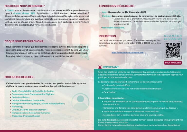 Concours de Recrutement ONCF 2025 (112 Postes)