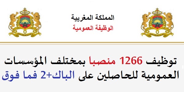 Al Wadifa الوظيفة العمومية: توظيف 1266 منصبا بمختلف المؤسسات العمومية للحاصلين على الباك+2 فما فوق. الترشيح قبل 25 شتنبر 2025