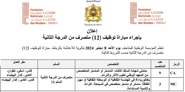Le Théâtre National Mohammed V lance un concours pour le recrutement de 03 agents.